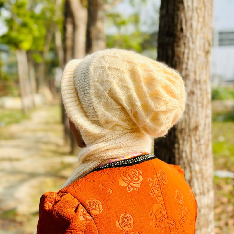Women's Woolen Cap with Knitted Neck Scarf Color : Off White আপনাকে রাখবে উষ্ণ, আর আপনার লুককে দেবে স্মার্ট ও প্রিমিয়াম ভাইব।